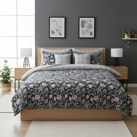 IV809 Cotton Reversible Comforter Set - Light Filling