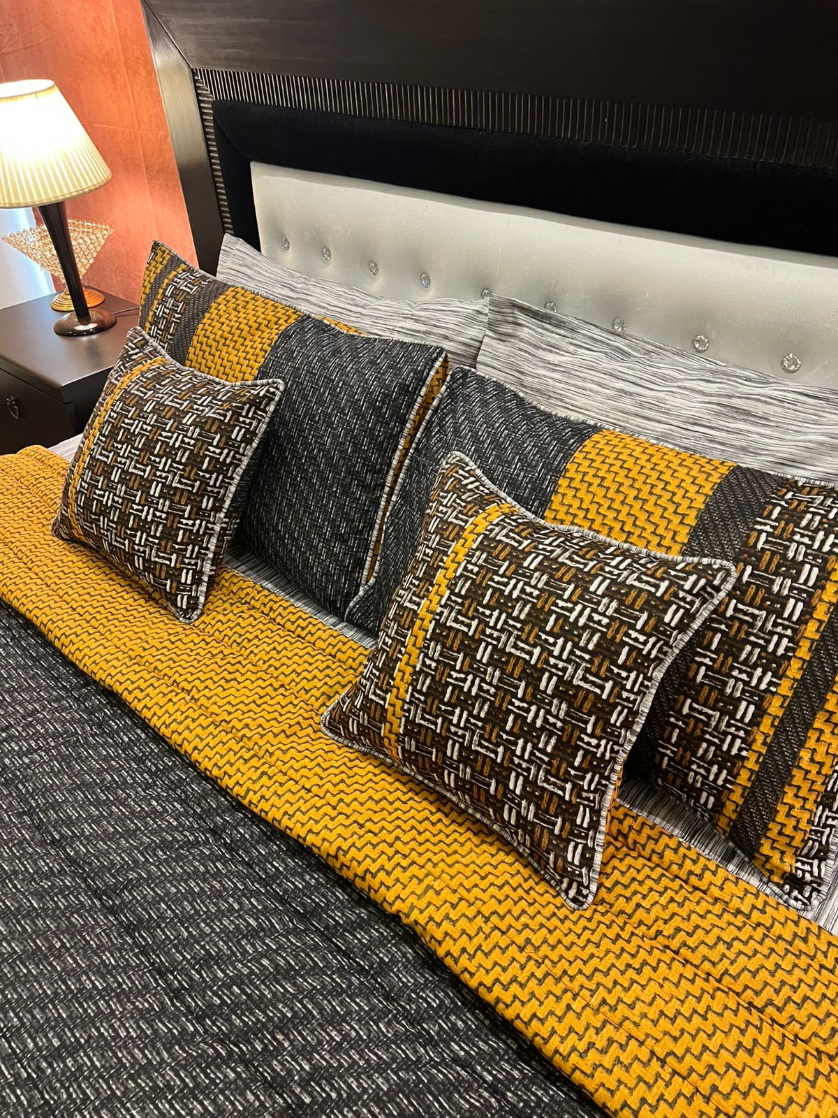 8 Pieces Queen Size Duvet Cover Set: 1 sheet (90”x95”), 4 pillow covers (19”x29”), 2 cushion covers (16”x16”) and 1 duvet cover without filling (90”x95”)