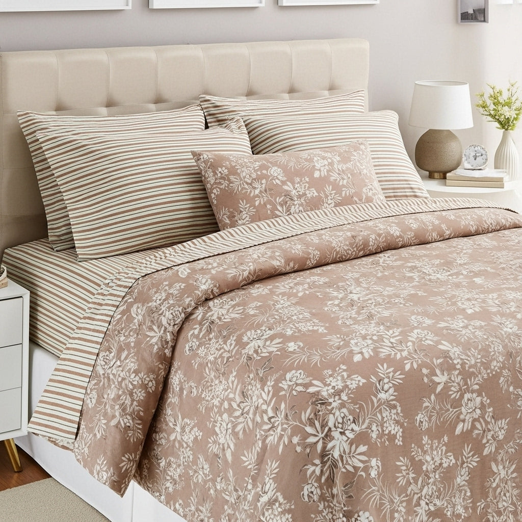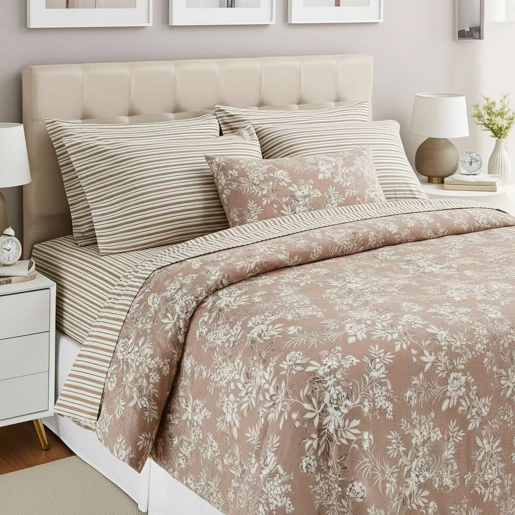 8 Pieces Queen Size Duvet Cover Set: 1 sheet (90”x95”), 4 pillow covers (19”x29”), 2 cushion covers (16”x16”) and 1 duvet cover without filling (90”x95”)