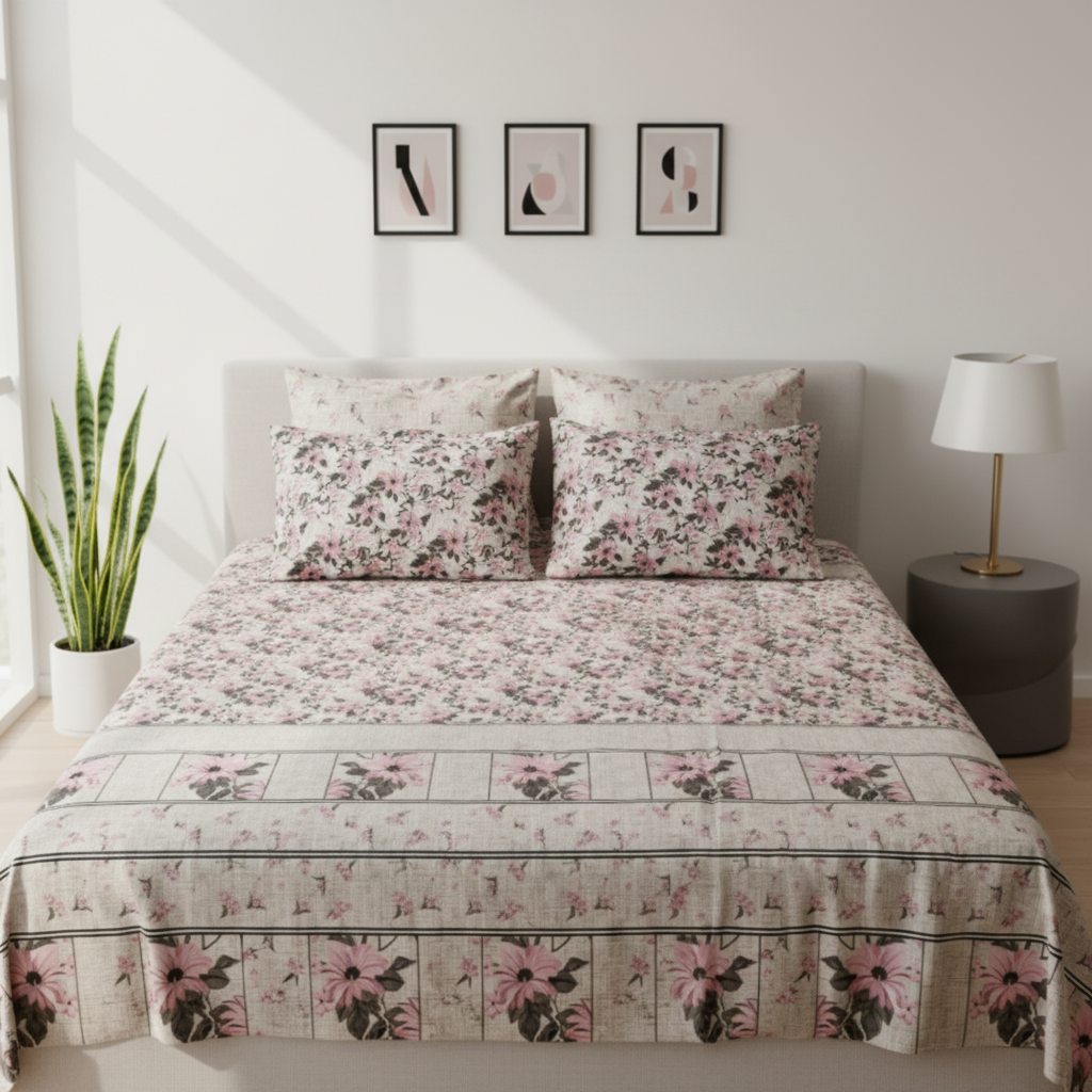 5 Pieces Queen Size Bed Sheet Set: 1 sheet (90”x95’), 4 Pillow Covers (19”x29”)